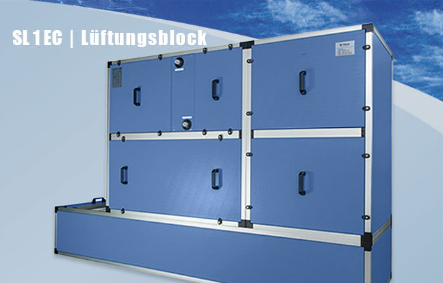 vom Plattenwärmetauscher kommenden Zuluft, um eine konstante Einblastemperatur zu gewährleisten. Ebenso ist ein Aufheizen der Schwimmhalle im Umluftbetrieb möglich, sodass weitere Heizkörper nicht nötig sind.